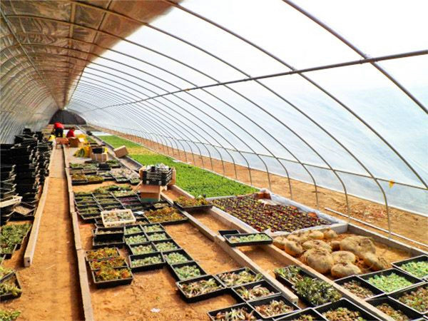 前坡面夜間用保溫被覆蓋,東、西、北三面為圍護(hù)墻體的單坡面塑料溫室,統(tǒng)稱為日光溫室。其雛型是單坡面玻璃溫室,前坡面透光覆蓋材料用塑料膜代替玻璃即演化為早期的日光溫室。日光溫室的特點(diǎn)是保溫好、投資低、節(jié)約能源,非常適合我國經(jīng)濟(jì)欠發(fā)達(dá)農(nóng)村使用。