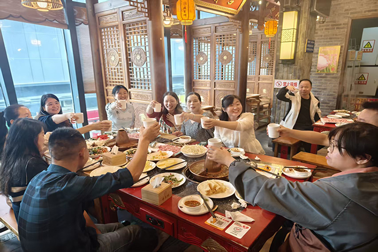 鮮嫩的羊肉、豐富的配菜陸續上桌,大家舉箸暢談,歡聲笑語與鍋底的沸騰聲交織。平日里在不同崗位忙碌的同事們,此刻圍坐一桌,卸下了工作的緊張,交流著生活中的趣事,暢談著對未來的展望。公司領導們也融入其中,親切地與每一桌的員工交流,向大家致以節日的問候,并感謝大家近期的辛勤努力??曜悠鹇溟g,不僅是美味的傳遞,更是情感的升溫與團隊的融合。這場羊肉火鍋宴,仿佛一個溫馨的大家庭聚會,暖了胃,更暖了心,將團隊凝聚力在這升騰的熱氣中推向新的高度。