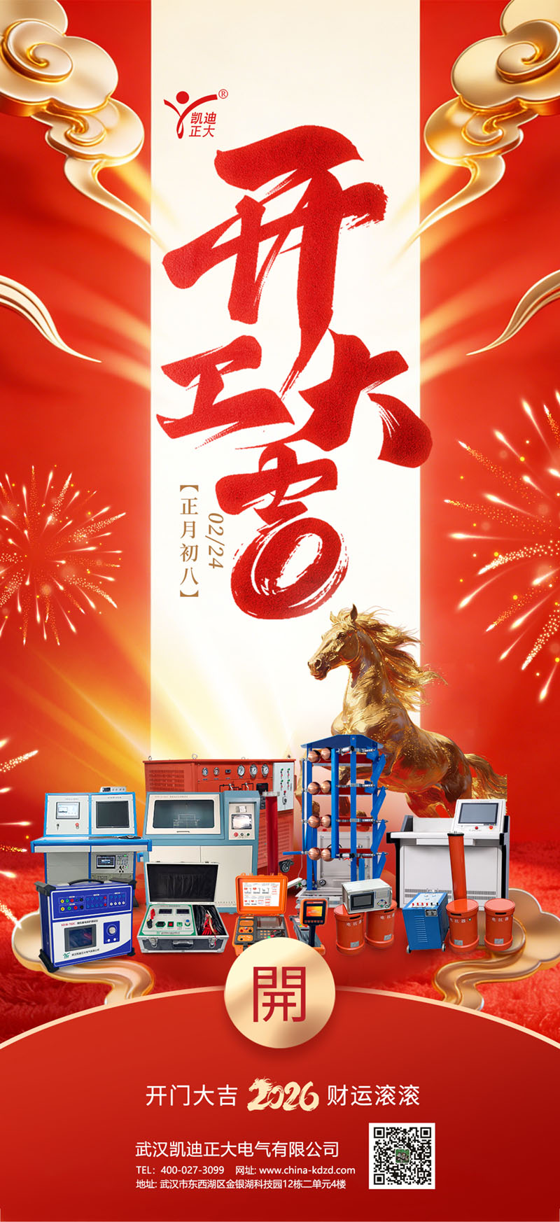 春風(fēng)浩蕩,征程萬里。2026年2月24日,農(nóng)歷正月初八,在這寓意著“八方來財(cái)、萬象更新”的吉祥日子里,武漢凱迪正大有限公司迎來了新年開工。全體凱迪正大人整裝待發(fā)、精神抖擻,以嶄新的面貌和飽滿的熱情,共同開啟2026年的奮斗征程!